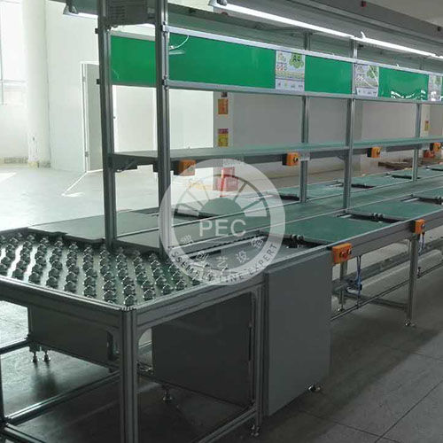 双边滚筒线分为手推式双边滚筒线和自动双边滚筒线两种,前者为手推式作业,后者为自动流动式作业(即工件一边自动流动一边作业),该作业方式效率较高。该设备广泛应用于一般加工、装配、包装比较重型的产品,同时也适用于各类重型慢节拍率的产品组装生产,也适用于托盘式货物的输送,本产品能够运送单件重量很大的物料,承受较大的载荷,全线标配有物料台,物料台有平面和斜面设计,全线体还标准配装了LED灯具、工具吊轨、气管及接头、线槽及插座、工艺SOP架等。
